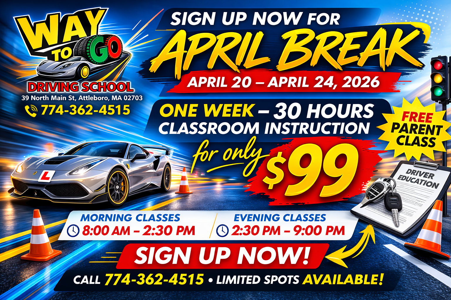 Teens can sign up for the 30-hour classroom instruction program by filling out the registration form on our “Class Registration” page. The 30-hour classroom fee, which is $199, must be made in full on the first day of class by cash, check, or money order.